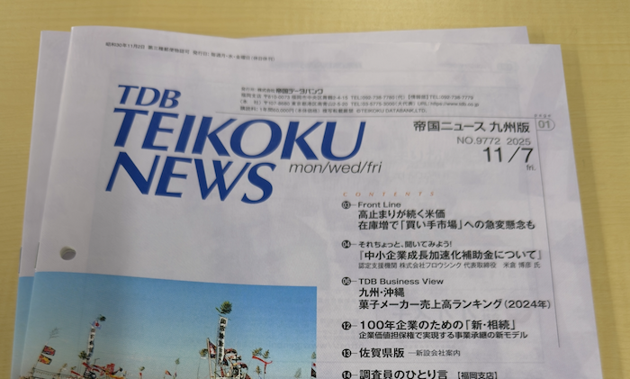 調査会社の帝国データバンクさんが発行している「帝国NEWS 九州版」に、当社代表取締役(筆者)のインタビュー記事が掲載されました。