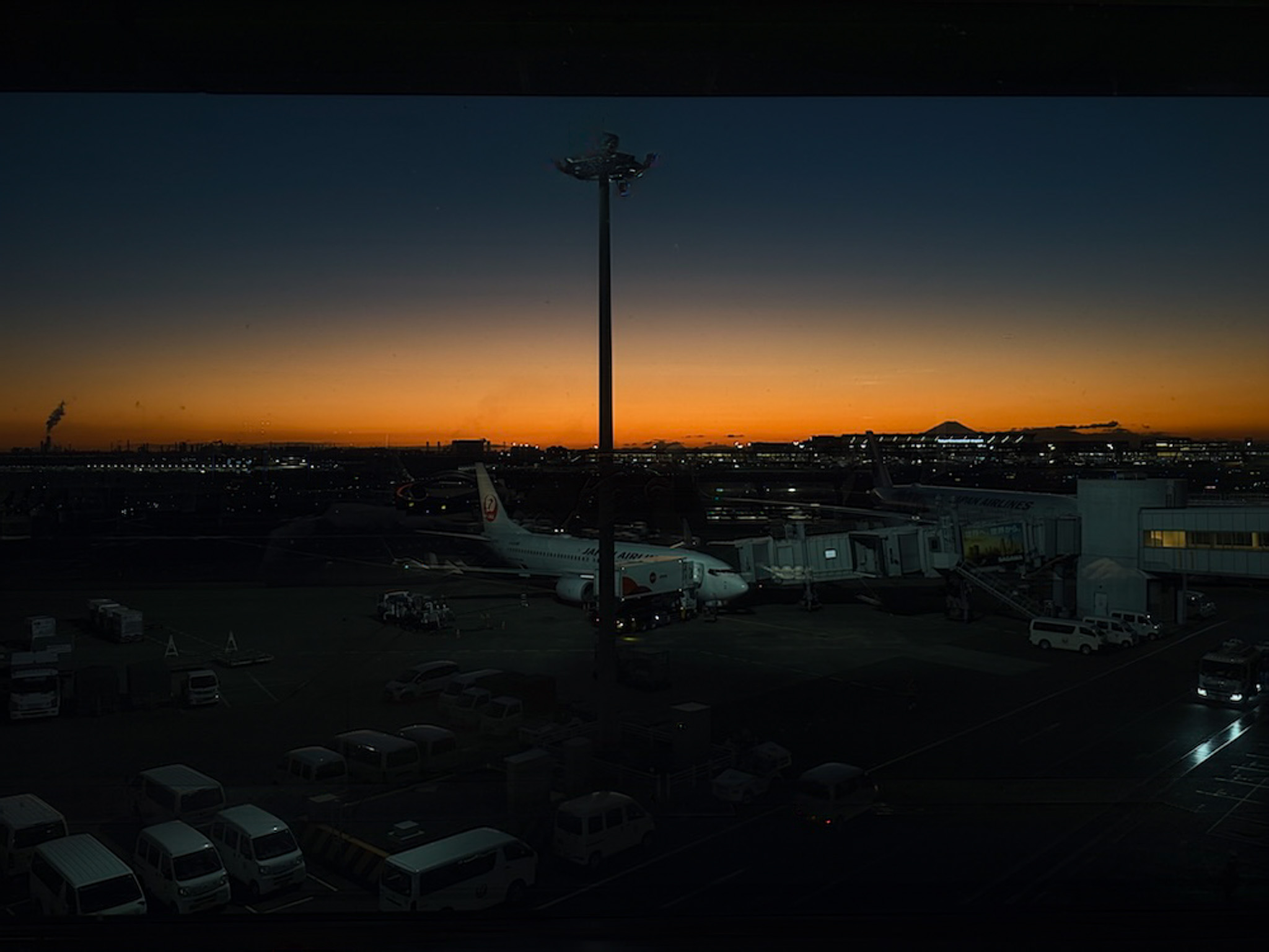 今回はスケジュールの都合により、珍しく夕方に飛行機に乗ることになった。だから、羽田空港から見る夕焼けが美しいことも、空港から富士山が見えることも、今まで知らなかった。
