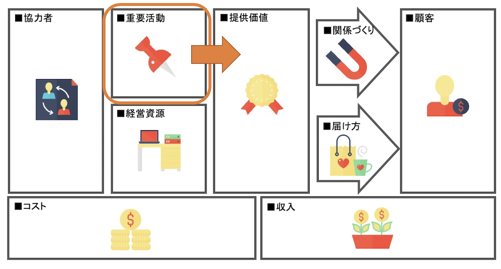 もしコストがかかりすぎているのなら、パートナーや重要活動、経営資源の要素を確認し、