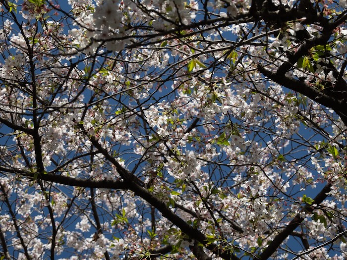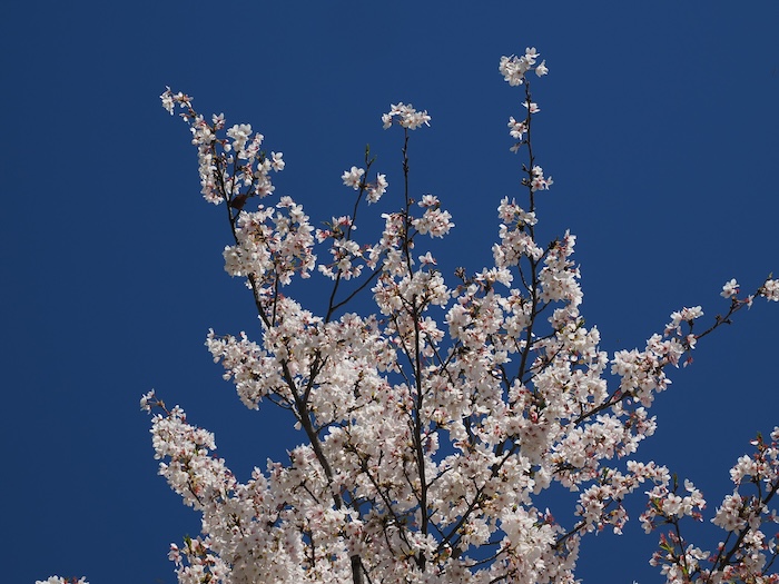 テレワーク時の昼休み、昼食を手短に済ませ、OM-1+12-100/F4だけを持って自宅近くの寺周辺を散歩した。まだ桜はなんとか残っていたが葉桜で、明日からの雨で終わるのだろう。外国人の観光客と、ベンチで食事をする女性。のどかだ。